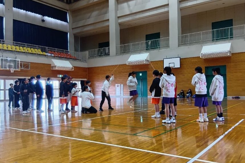 その後は実際にダブルダッチを体験させていただきました。跳ぶだけでなく、ロープを回す体験も行い、普段なかなかできない貴重な経験となりました。